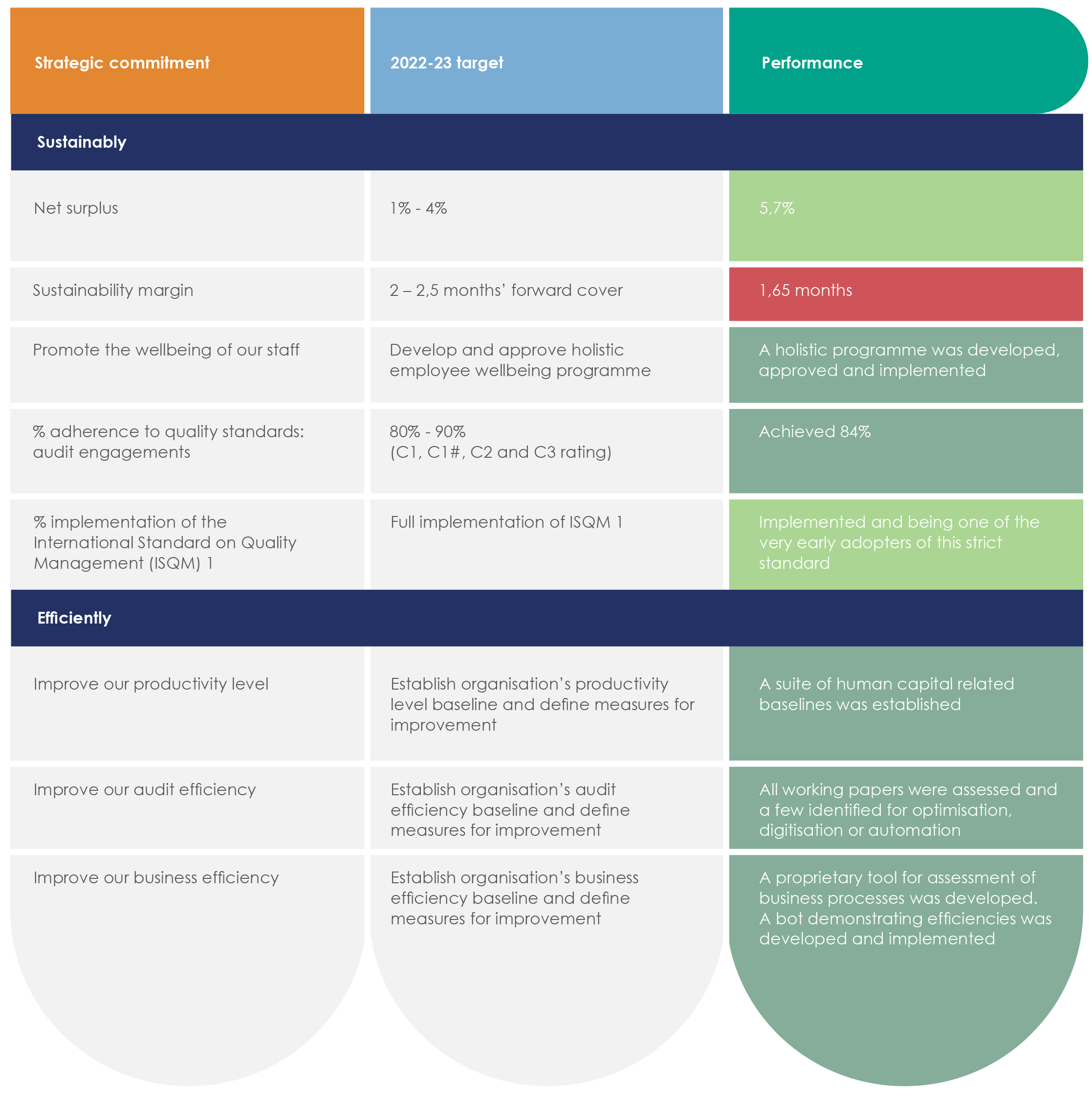 - Delivering tailored audit and engagement programmes to assit them to improve their respective cultures so that they are characterised by performance, accountability, transparency and integrity