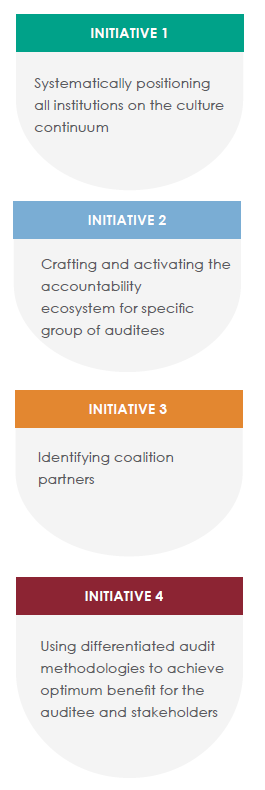 Since a one-size-fits-all approach is not effective in changing public sector culture, our audit teams are customising the levers for each public sector institution, based on their indepth knowledge of the institution’s environment, to ensure optimum impact.