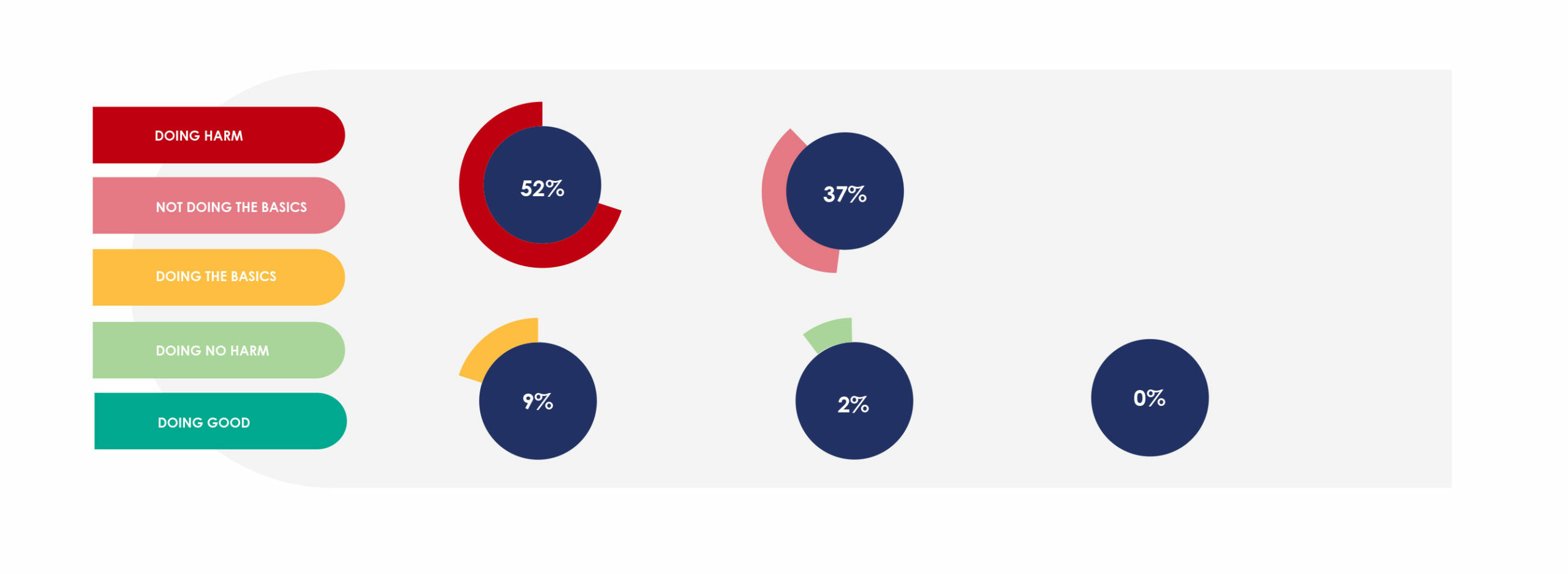 This is a tough starting position, given our ultimate vision for the success of our strategy: a minimum of 30% of institutions that we audit shifting to “doing good” by 2030, with less than 10% in the “doing harm” category.